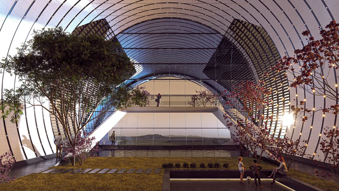 露台将容纳城市花园以及带有动物和水体的小型公园。Nuiva的居民将能够在完全安全的情况下欣赏火星景观的壮丽景色。